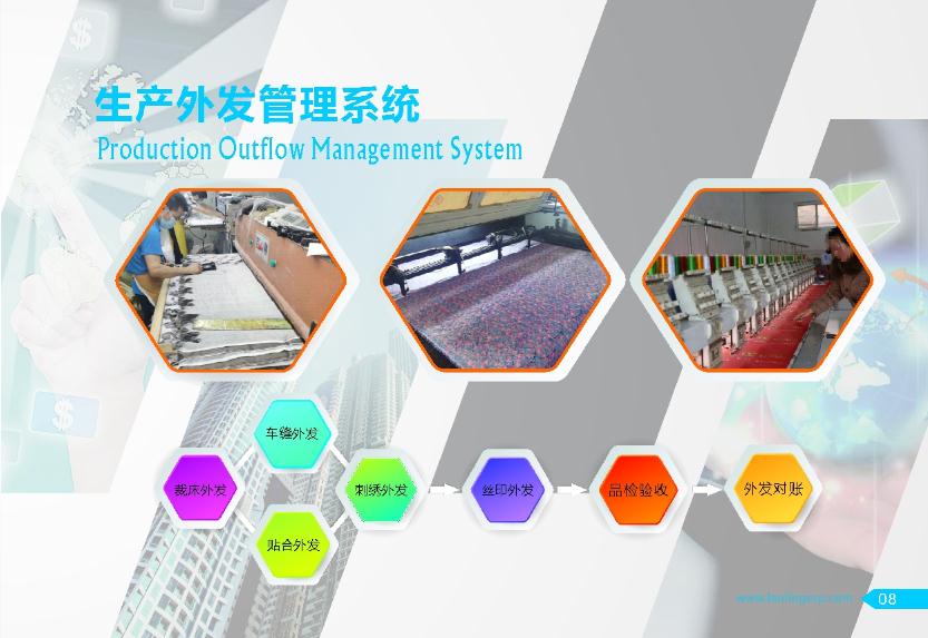 倉庫、生產工藝、生產外發、貨品銷售、財務應收應付。
